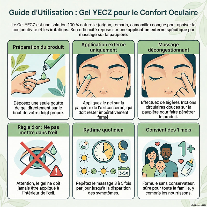 Notre Gel YECZ est une formule gel naturelle et brevetée, contenant des hydrolats bi-distillés de camomille noble, de tanaisie, d'origan et de romarin.